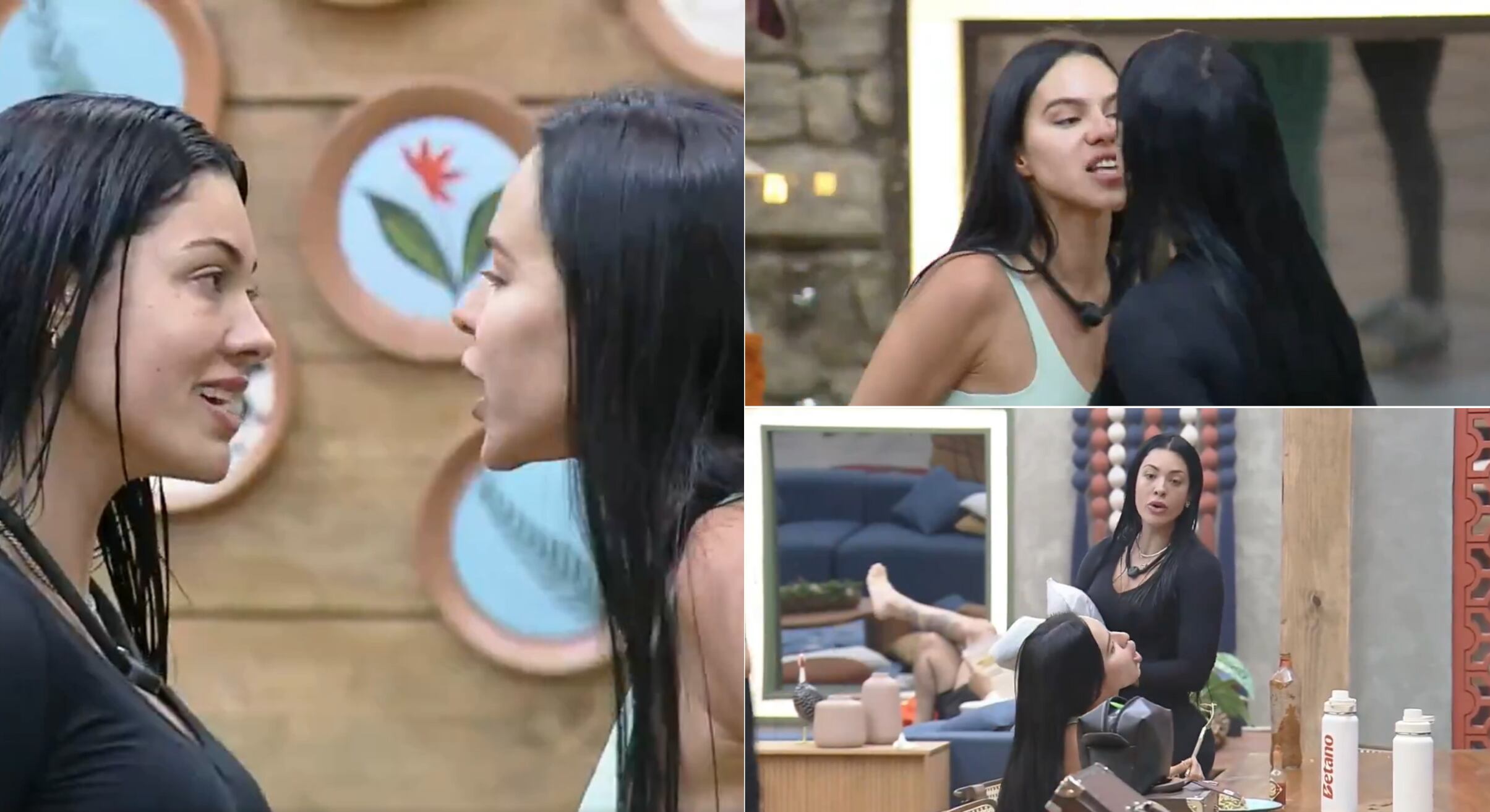 Ray ficou nervosa e chamou a rival de “otária” e “bunda de avião”. Já Tàmires, disse que a influenciadora vai vazar do programa. Elas se encararam bem de perto, e Ray falou: “Você precisa falar do outro para sobreviver. Deve falar isso do outro para sobreviver. Bafo de atum!” Tàmires rebateu: “Agressiva. Me bateu de novo hoje. Além de ser feia, você é nojenta. Olha para você sem maquiagem.”