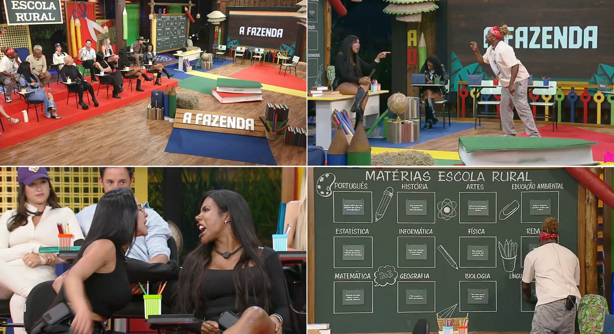 A dinâmica era simples. O Fazendeiro Dudu Camargo começou sorteando o nome de um peão na urna. Créo Kellab foi o primeiro, e teve que escolher uma entre as 12 matérias que estavam dispostas na lousa, para dar a um desafeto. Cada matéria vinha acompanhada da explicação, como ‘Geografia’, que significava ‘peão que não respeita os limites de ninguém’.
