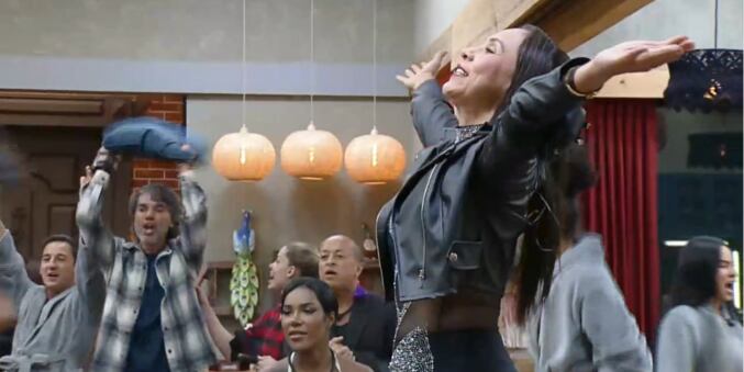 A peoa pareceu não se abalar e entrou na onda dos oponentes. Ela subiu no sofá e participou do momento aos berros: “Inesquecível”.