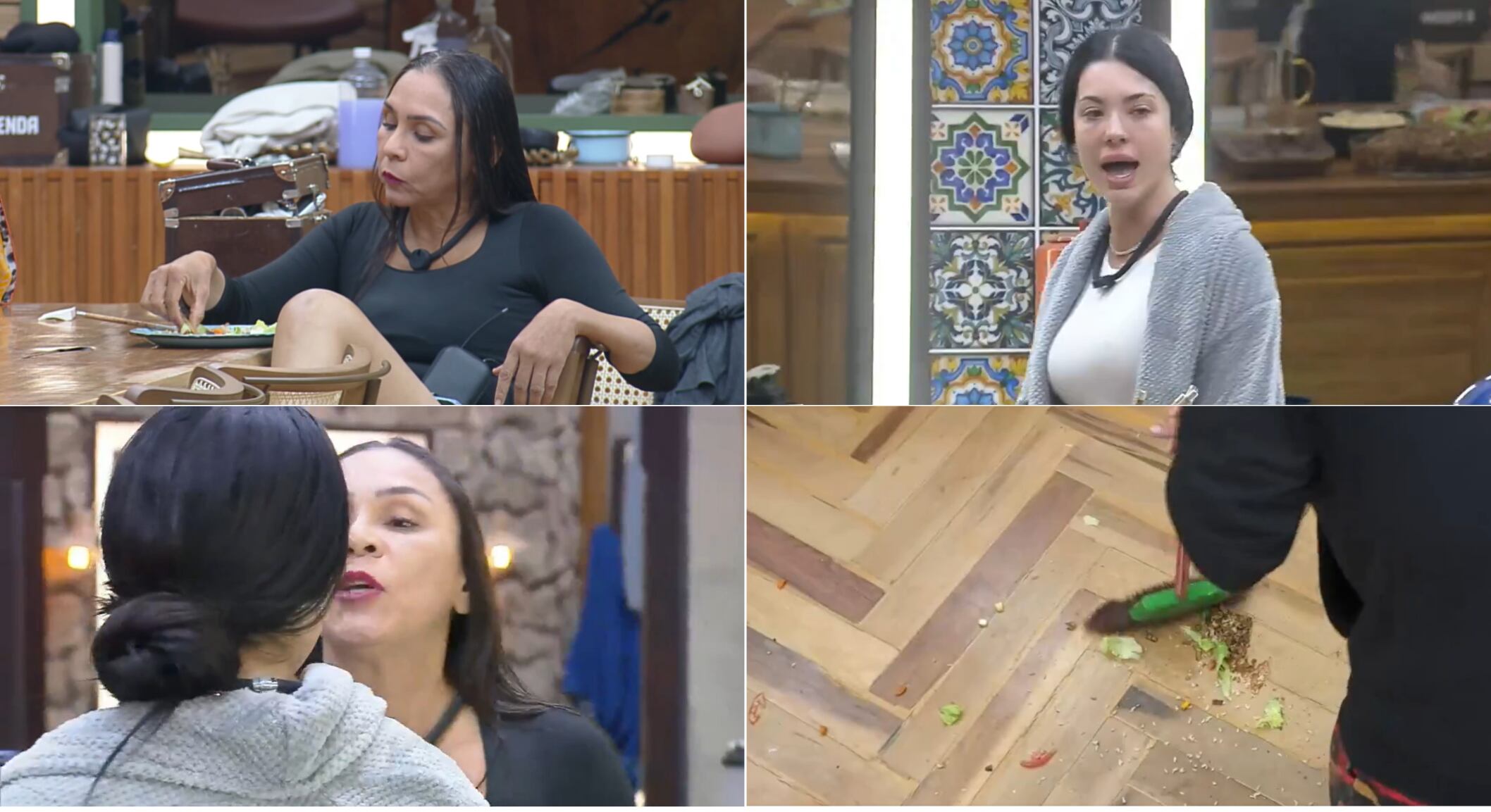 Martina perguntou a Nizam onde estava o açúcar, passou ao lado de Yoná e falou: “Come agora!” Não é possível ver o que aconteceu pelo ângulo, mas após a fala de Martina, a advogada se levantou e jogou toda a comida do prato no chão.