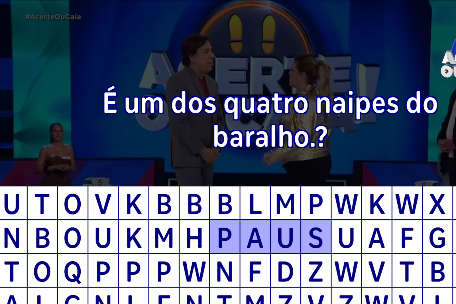 • Ache as palavras que foram respostas para as perguntas do "Acerte ou Caia"