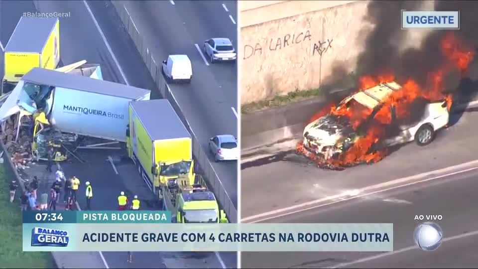 Acidente com quatro caminhões paralisa trânsito na Dutra, no Rio de Janeiro