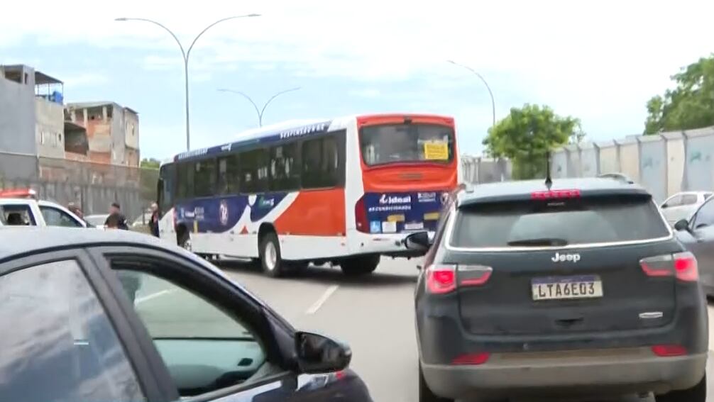 Criminosos atravessam ônibus na Linha Amarela durante operação no Complexo da Maré, no Rio