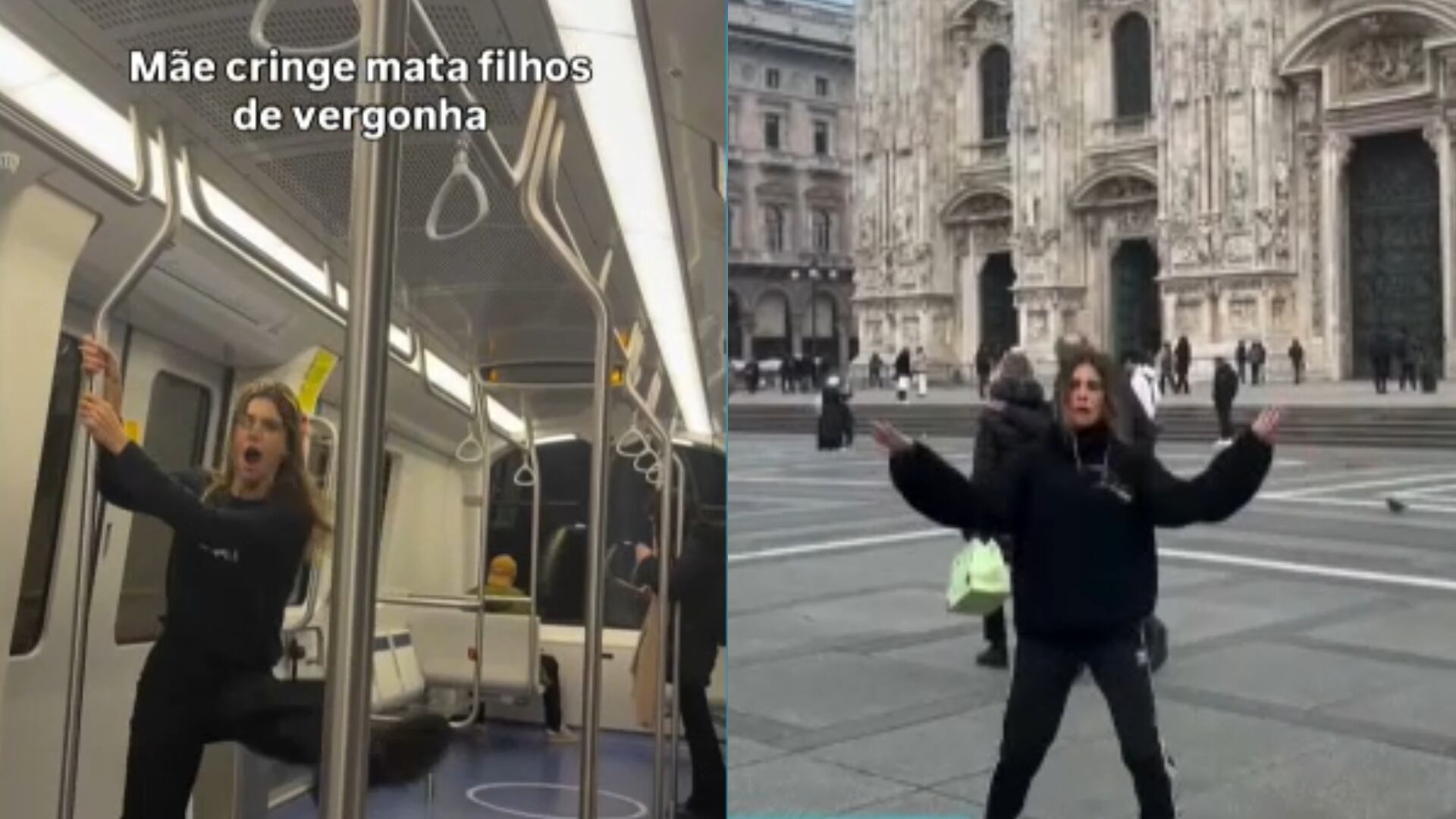 Modelo faz brincadeira com os filhos durante viagem à Europa