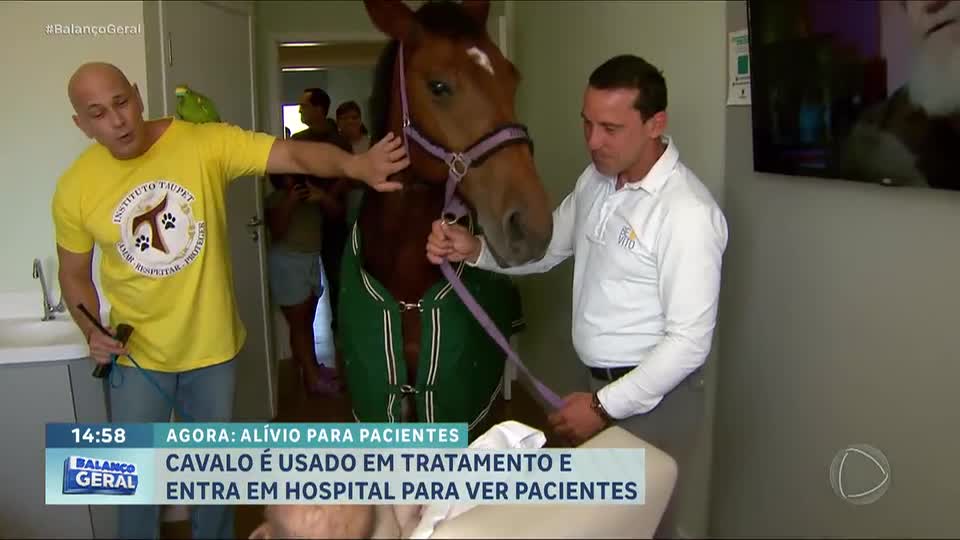 Cavalo é usado em tratamento e entra em hospital para ver pacientes em Santos (SP)