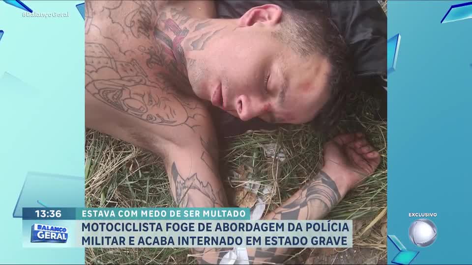 Motociclista sem capacete tenta fugir da polícia, sofre queda e é internado após suposta agressão