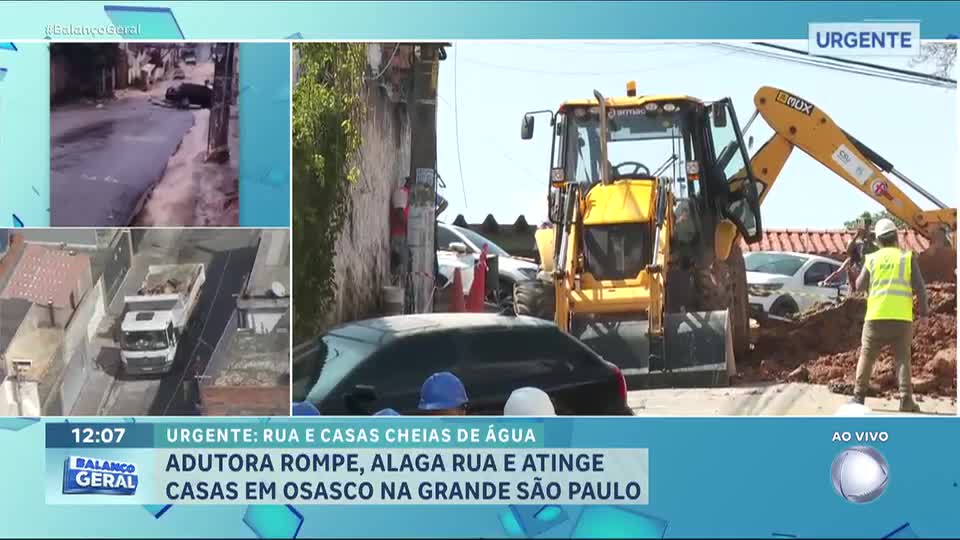 Adutora rompe, alaga rua e atinge casas em Osasco (SP)