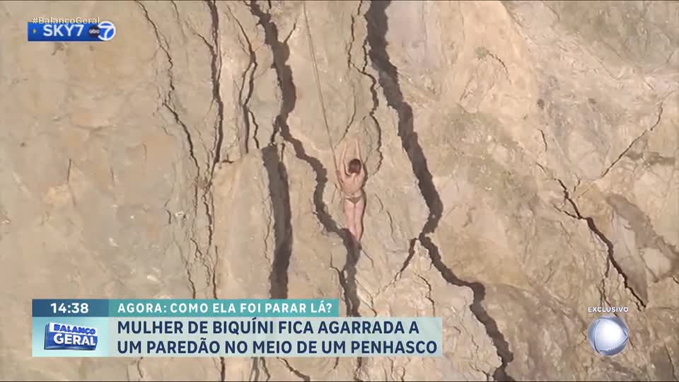 EUA: mulher de biquíni fica agarrada em pedras no meio de penhasco