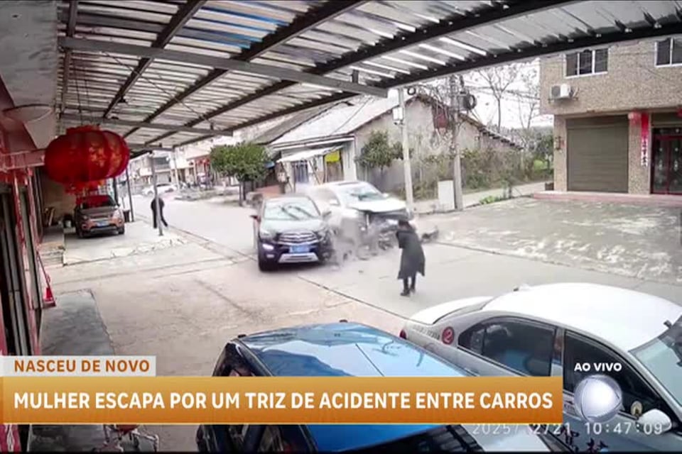 Mulher escapa de acidente grave por um triz em cruzamento na China