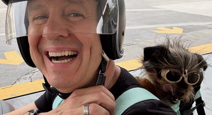 Puro estilo! Celso Zucatelli compartilha passeio de moto com o pet, e internautas reagem: ‘Cheio de charme com esses óculos’