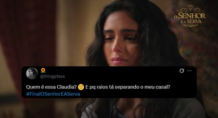 Mas ao se deparar com Claudia (Michelle Martins) na casa de Caius, Elisa pensou que o romano havia se casado e orou a Deus: “Tira ele do meu coração, Senhor. Eu não quero amar um homem comprometido”. Reprodução/Twitter X