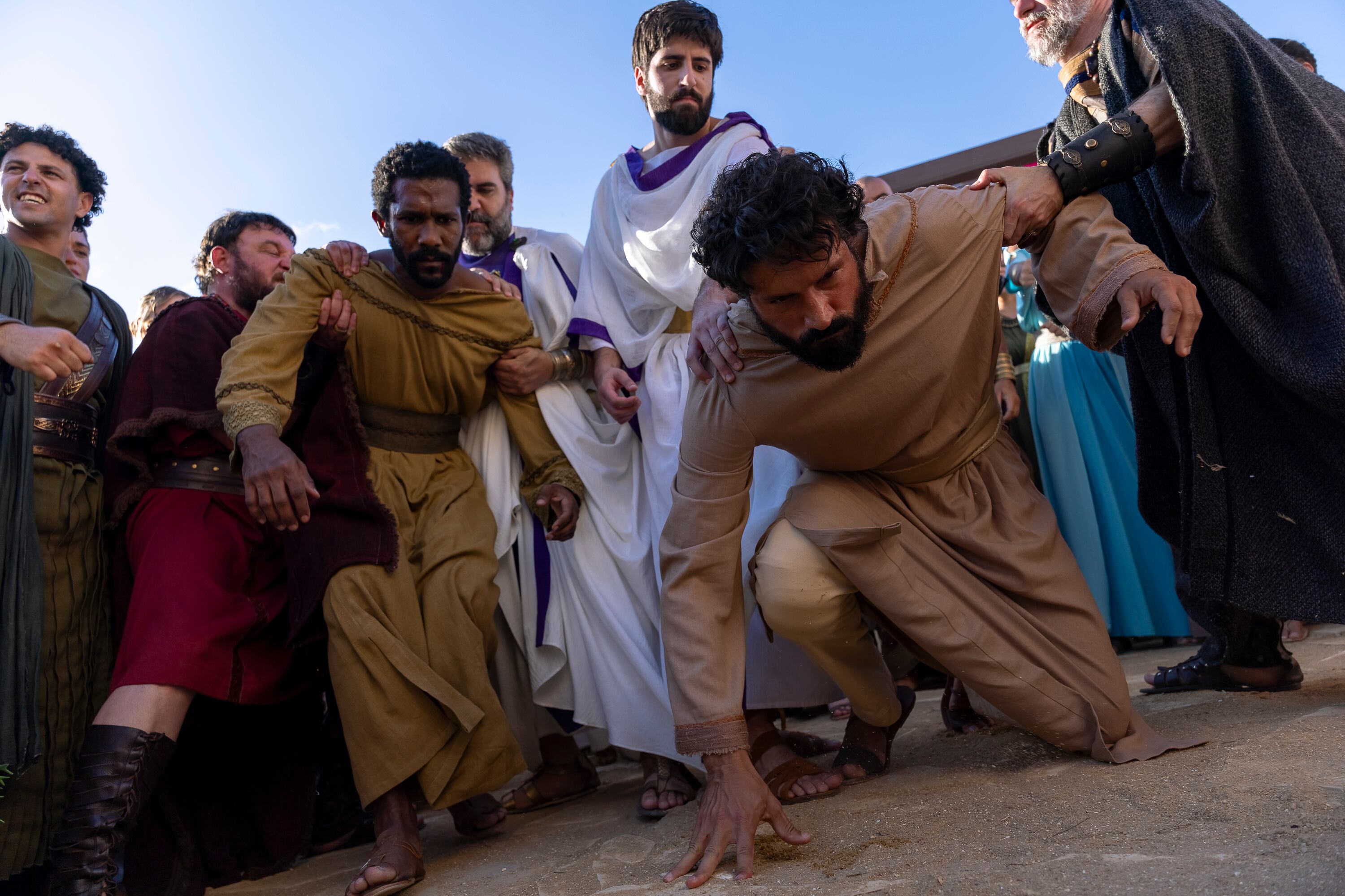Para André, essa foi a sequência que mais o marcou na superprodução. “Temos vários acontecimentos ao longo do caminho com o quarteto, mas o açoitamento envolve só a dupla Paulo e Silas. Percebo que é um momento em que os papéis se invertem, o Silas quase usa o poder de ser romano naquele momento, mas o Paulo diz que tem um propósito ali. Então, eles aceitam ser açoitados. E depois tem mais uma demonstração de fé dentro do cárcere [durante o terremoto], e os dois sabem que Deus está com eles o tempo inteiro”.