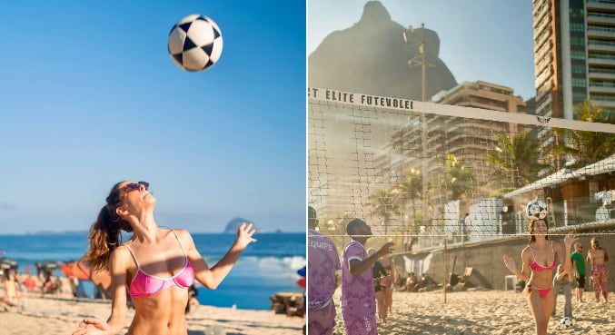 Musa das telas e dos esportes! Michelle Batista, Rode em Paulo, O Apóstolo, está sempre disposta a experimentar novos exercícios, e dessa vez não foi diferente, a atriz se aventurou em uma aula de futevôlei.