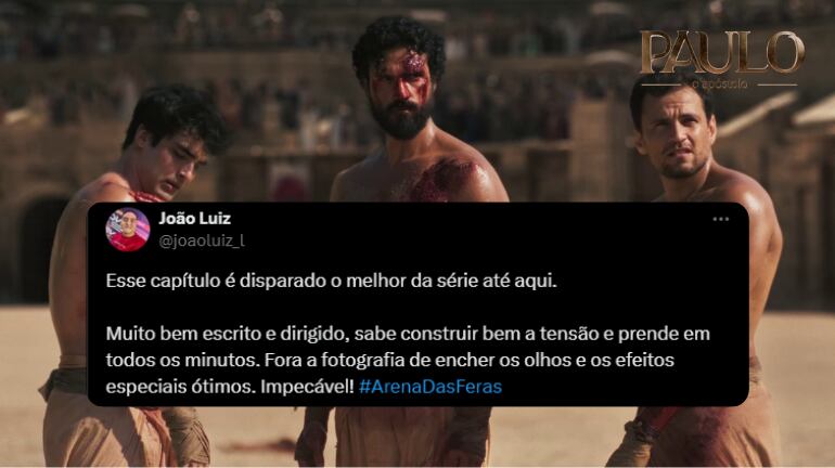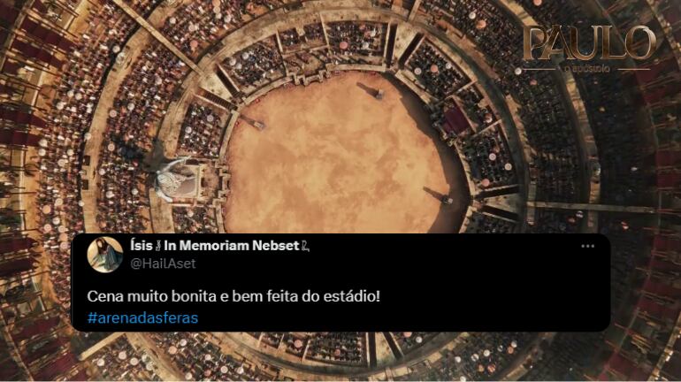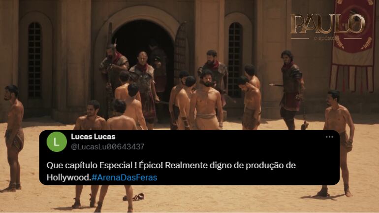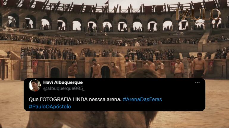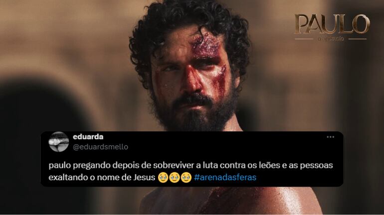 Paulo (Murilo Cezar) lutou com as feras na Arena de Éfeso e foi salvo por Deus. Depois do espetáculo de brutalidade, o apóstolo repreendeu os efésios e testemunhou sobre O responsável por sua sobrevivência, Jesus Cristo. No Twitter X, os internautas repercutiram o episódio de Paulo, O Apóstolo com a hashtag #ArenaDasFeras e elogiaram a grandiosa qualidade da superprodução.