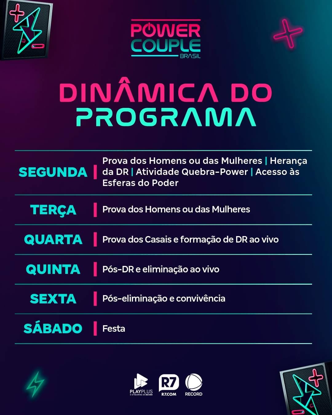 Semana agitada! Confira o cronograma do Power Couple Brasil 7