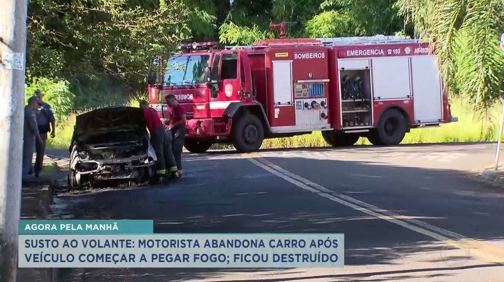 Susto: motorista abandona carro após veículo pegar fogo
